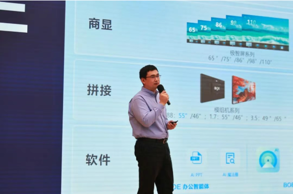 大会上,AI+产品设计中心中心长陈硕解读2026 产品规划,围绕 AI+办公 与 AI+商显 两大方向彰显研发硬实力;AI+产品应用中心副中心长张超聚焦 AI 软件如何全面赋能BOE品牌产品,构建差异化竞争力,打造办公全场景智能协同;产品设计3部部长杨金超分享品牌产品背后的设计故事,诠释设计承载品牌内核,细节打磨彰显产品品质与格调。